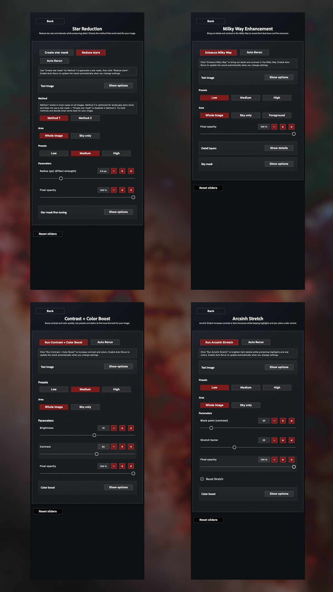 • Arcsinh Stretch – farberhaltender Stretch mit Kontrast-/Boost-Kontrolle